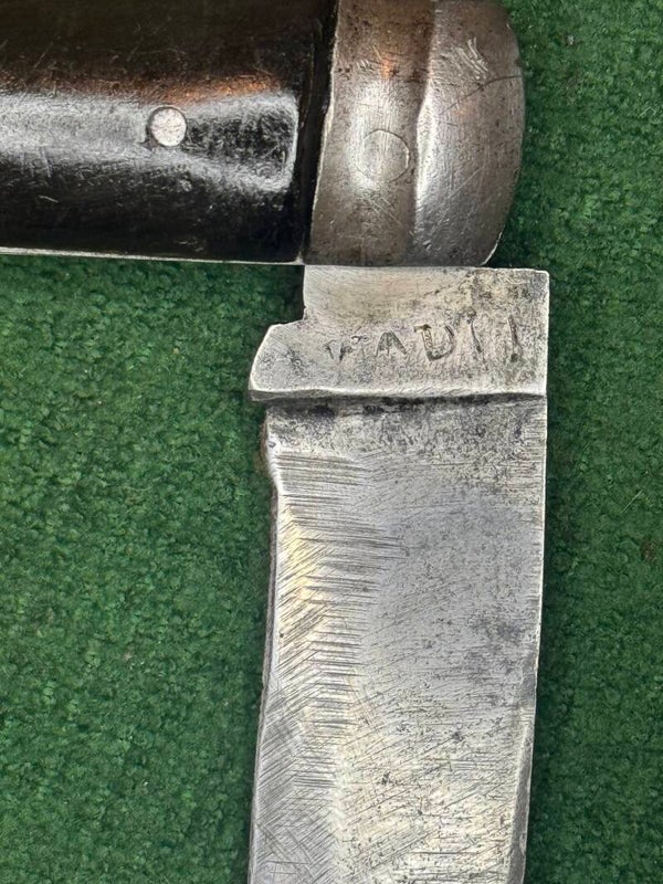 The blade as a slight drop very good snap slight side wobble overall lovey piece of British military history
