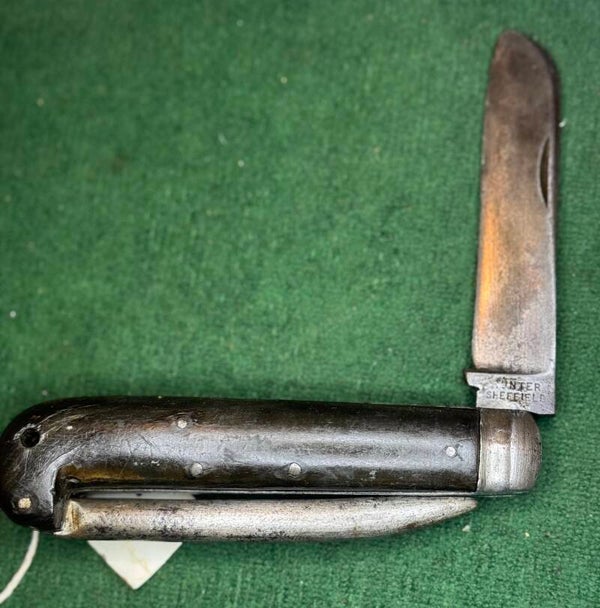Maker: "HUNTER SHEFFIELD" stamped on the mark side tang, WTD 4 stamped on the pile side tang.