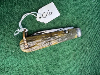 Cow horn scales double blade in good working condition . Lovley little penknife quality made long before the cheap ones in corner shops we saw as kids on cardboard pull off.